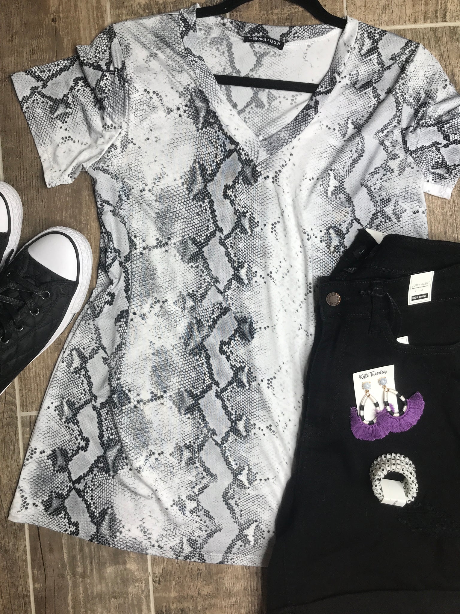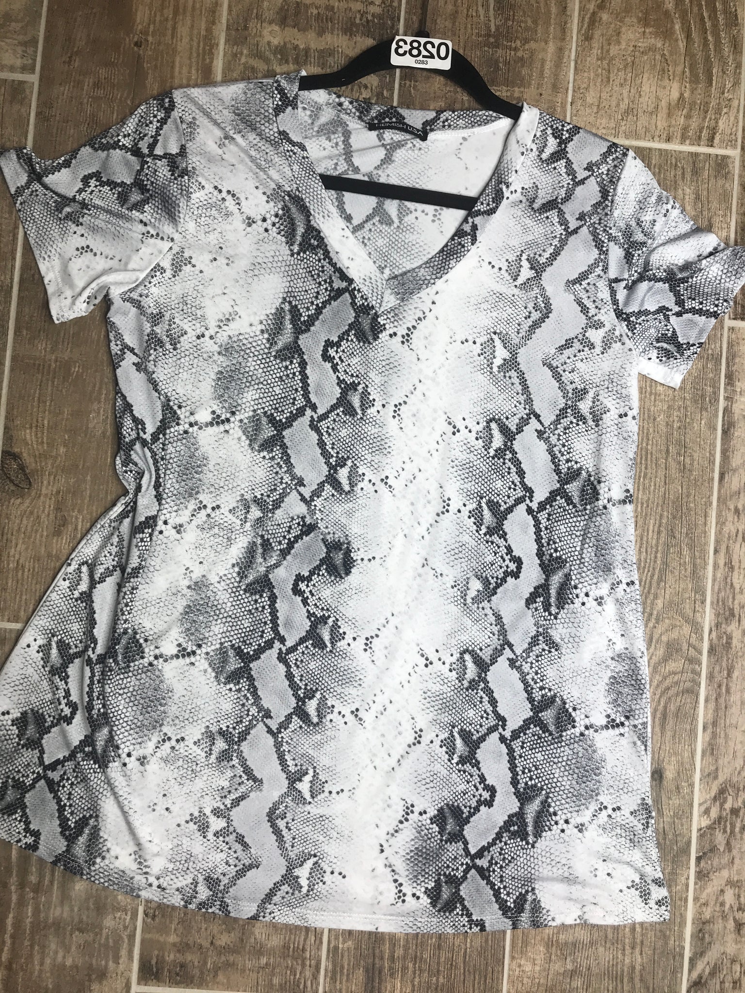 Grayscale snake print with gray/black and white coloring